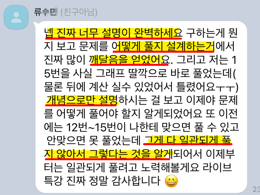 어떠한 조작도 없는, 수강생들이 자발적으로 보내준 내용 입니다.